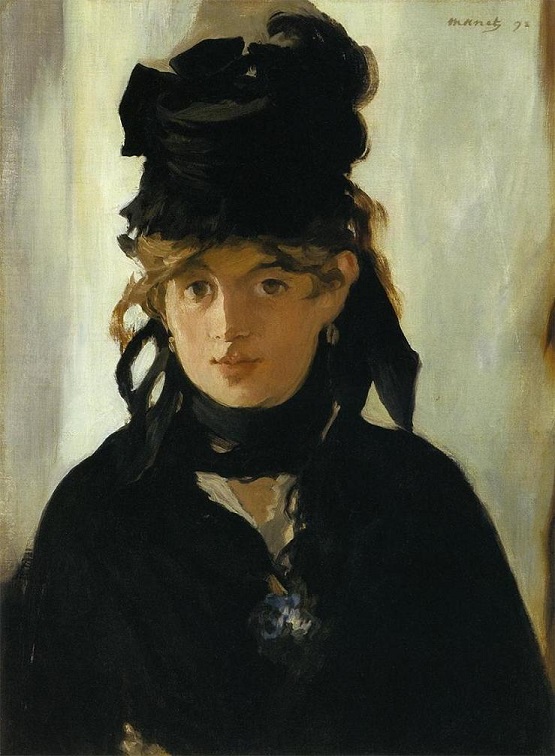 画面の中から挑みかかるような眼差しをこちらに向けている一人の女性がいます。 女性は上半身のみの姿で存在しており、頭には大きな黒いシルクハットを被って、全身をそれと同色の衣服で覆っています。 胸元に紫色がほのかに見えますが、それはすみれのブーケです。 女性の背景は何も描かれておらず、ただ淡いグレー色が塗りこめられているだけです。 実に平面的で単調的な肖像画ですが、見る人全てを圧倒してしまうようなもの凄い存在感があります。 背景のその塗りこまれているグレー色は、まるでその女性の内面から噴き出ている熱情の炎のようです。 実に情熱的で魅力的な女性です。一体彼女は何者なのでしょうか。 実は、彼女は印象派の女流画家、ベルト・モリゾなのです。 ベルト・モリゾは卓越した才能と美しい容姿を持った画家でした。 当時においては珍しく自らの地位を確立した女流画家であり、また優れた人格の持ち主であったと言われています。 多くの画家が彼女の気を引こうとしたため、彼女は画壇から「運命の女」とまで称されました。 マネもその彼女の虜になった一人です。彼は彼女をモデルにした作品を何枚か描きました。 この作品はそのうちの一枚であり、マネの肖像画作品の代表作ともなっています。 ベルトは自身が優れた画家であっただけでなく、マネの芸術性を刺激したミューズでもあったのです。 ベルトをマネに紹介した画家のファンタン・ラトゥールは彼女のことをこう語っています。 「モリゾ家の令嬢たちは魅力的であると私も思います。彼女たちが男性でないのが悔やまれます」