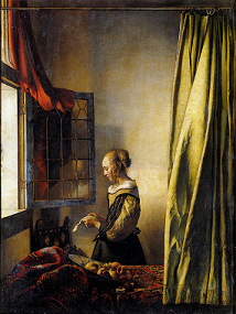 窓辺で手紙を読む女 ドレスデン国立絵画館所蔵 |